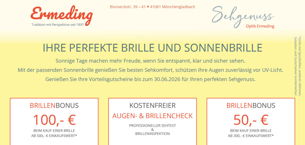 Wir sind ein Familienbetrieb, der seinen Ursprung im Jahre 1897 hat, als August Ermeding das erste Optikfachgeschäft in Mönchengladbach eröffnete. Erich Ermeding leitet das Unternehmen gemeinsam mit seiner Frau Klara Ermeding in nunmehr 4. Generation.